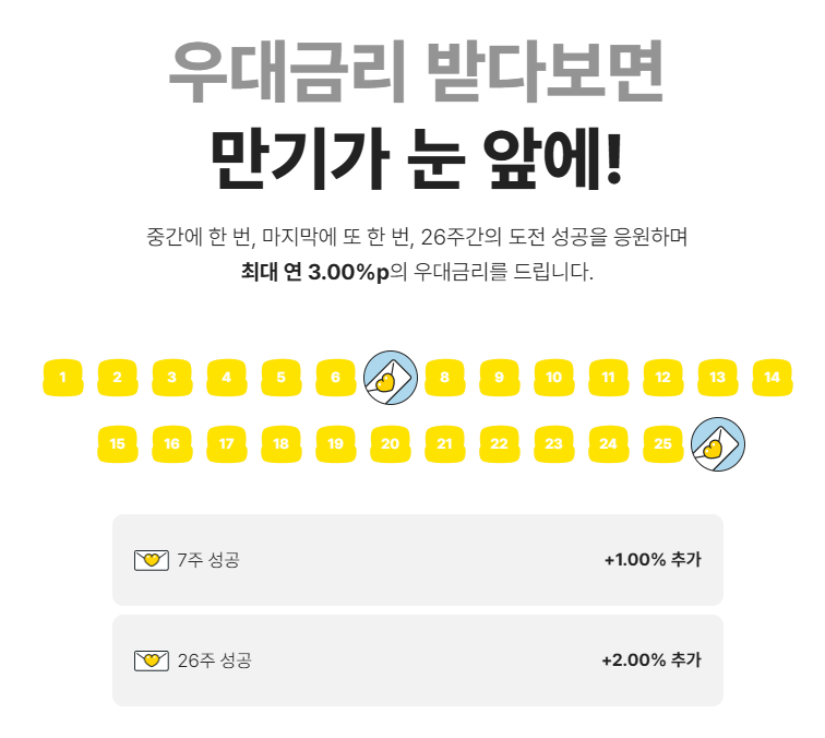 26주 적금은 주 1회, 3만원씩 총 26회 납입하는 방식입니다. 한달 적금보다 기간이 길고, 각 회차의 금액이 상대적으로 오래 보유되기 때문에 자연스럽게 이자가 더 붙습니다.